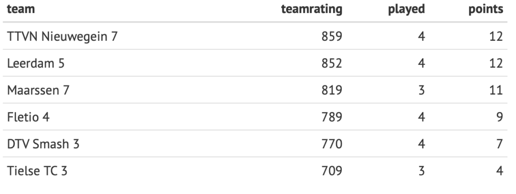 De belangrijkste bijzaak ter wereld is ook dit voorjaar weer het genieten van het spel, in de Afdeling Midden van de NTTB. Maar op het moment dat we ons groene, net gestreken shirt aantrekken, gaat er een knop om. Dan gaat het mes tussen de tanden. Sportief? Altijd. Maar rücksichtlos en nietsontziend? Absoluut. En dat is terug te zien in de resultaten.